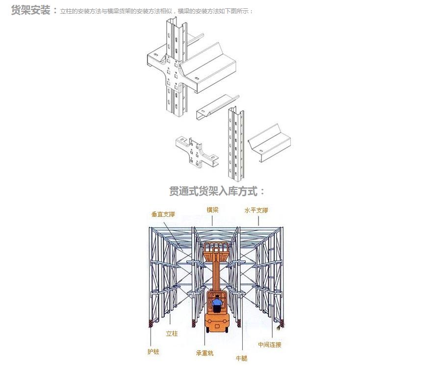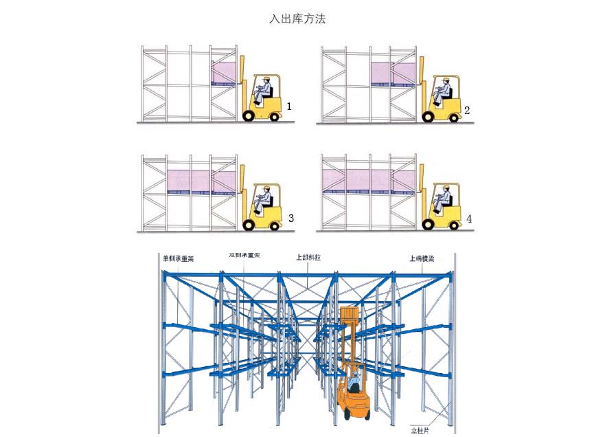 1、貨物存儲通道亦為叉車儲運通道,是存儲密度較高的一種形式貨架